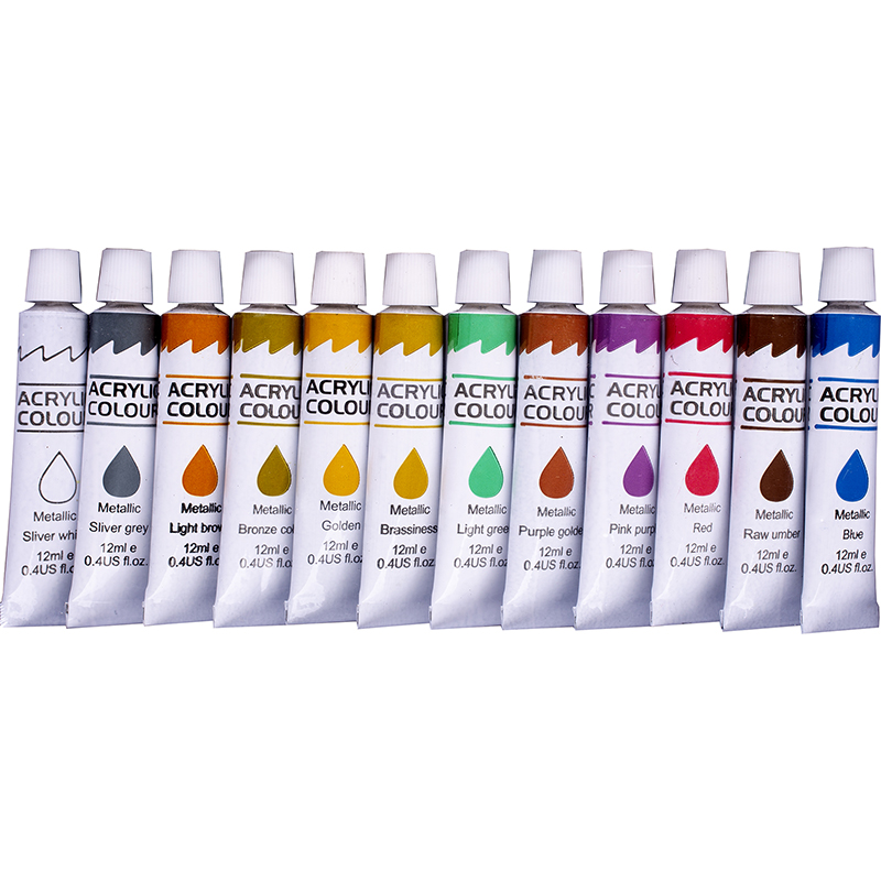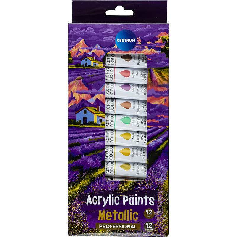 Akrüülvärvid metalltuubis Centrum Metallic 12ml, 12 värvi pakis
