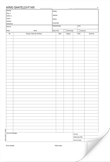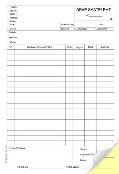 Blankett Arve-saateleht A4 pikuti, 100 lehte, isekopeeruv CFB
