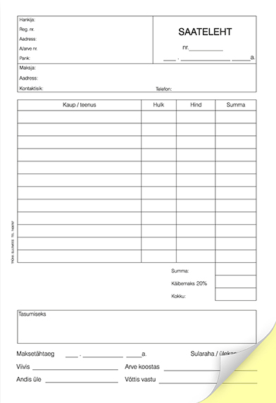 Blankett Saateleht A5 pikuti, 2×25 isekopeeruv