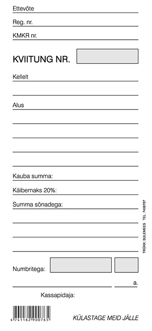 Blankett Üürikviitung A6 pikuti 100 lehte