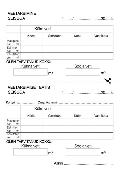 Blankett Veetarbimise raamat A6, 24 lehte