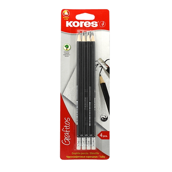 Harilik pliiats kolmnurkne kummiga KORES HB, 4tk riputuspakis