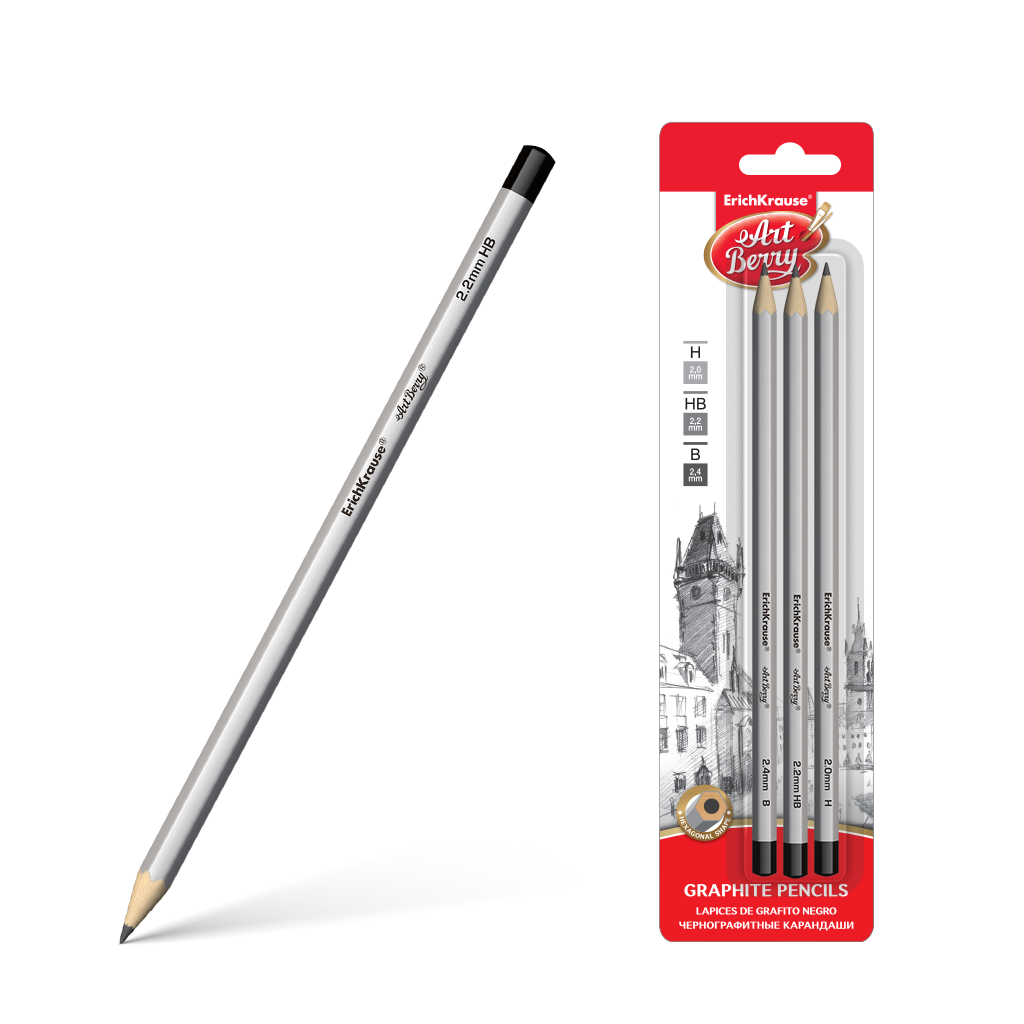 Harilik pliiats kuuskant kummita ARTBERRY (H,HB,B) 3tk riputuspakis