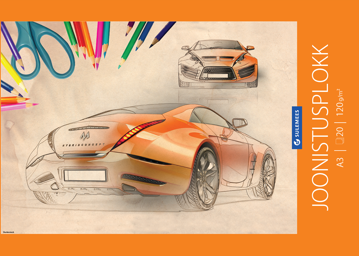 Joonistusplokk A3 120 g, 20 lehte – auto