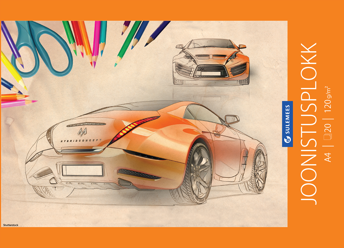 Joonistusplokk A4 120 g, 20 lehte – auto