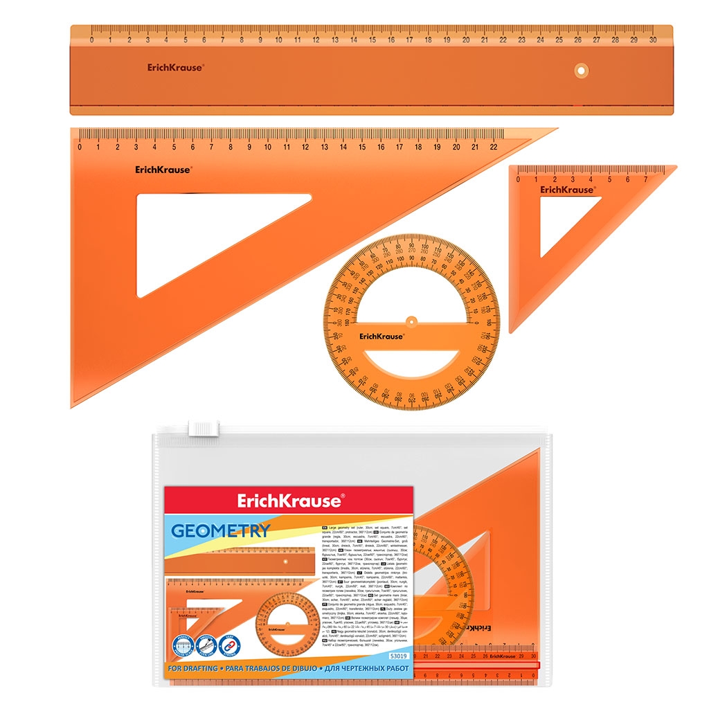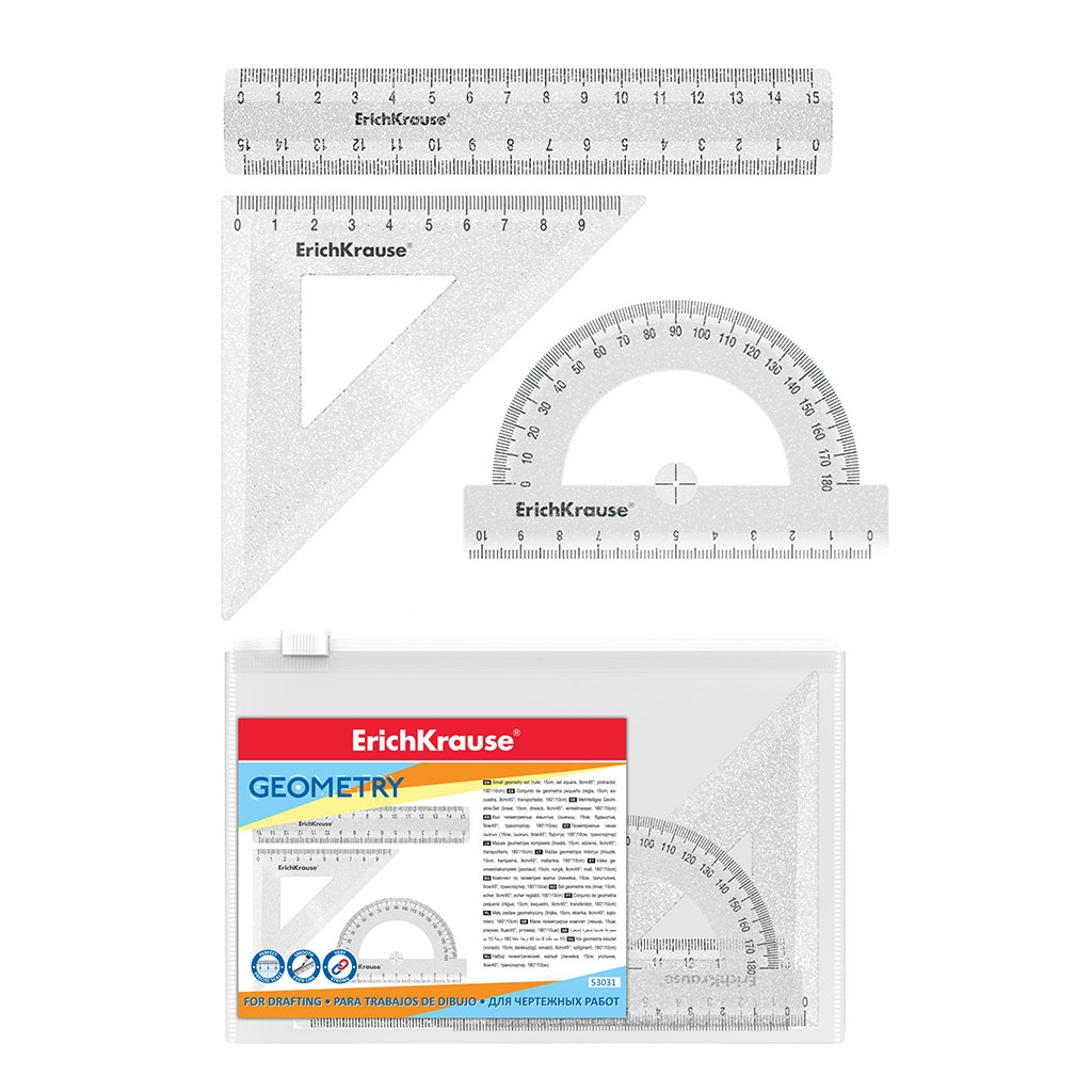 Joonlaua komplekt GLITTER, joonlaud, kolmnurk, tõmblukuga kotis