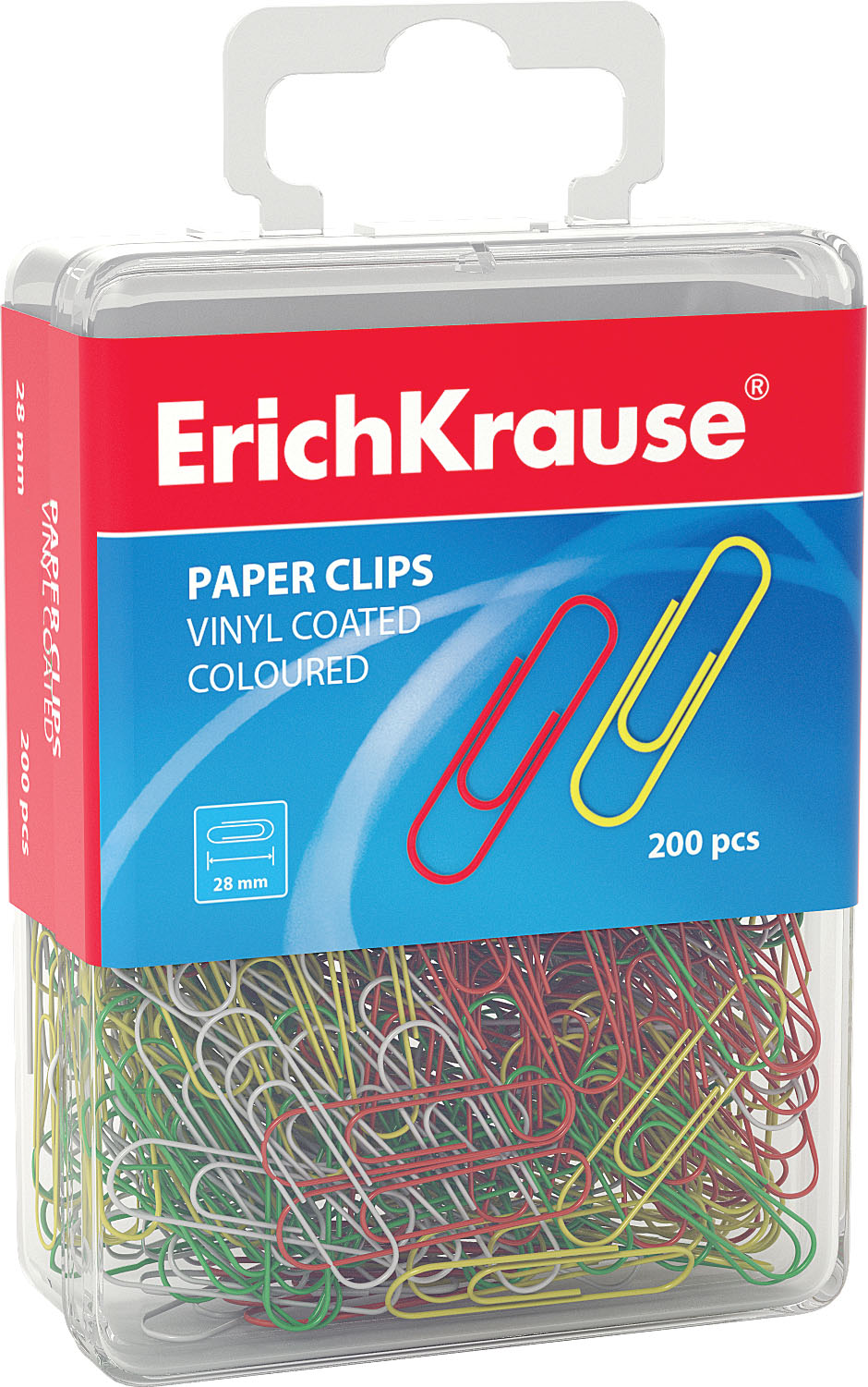 Kirjaklamber 28 mm hõbe, 200tk riputusauguga plastkarbis