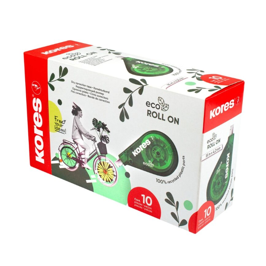 Korrektuurlint 4,2mm x 15m KORES ECO, taaskasutatud plastik, riptuspakis