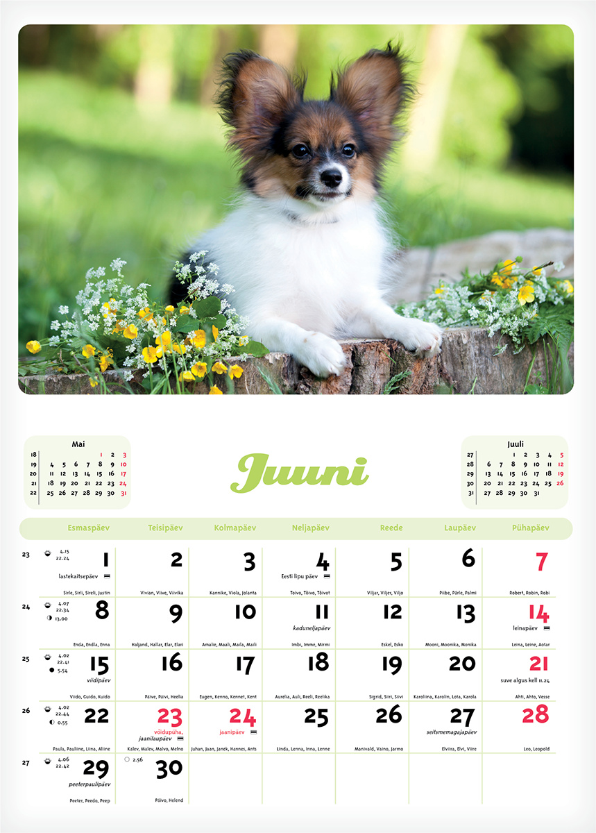 Klamberköites seinakalender piltidega kutsudest. Avatud mõõt 240×330 mm. Kalendaarium sisaldab riigipühi, riiklikke ja rahvakalendri tähtpäevi, nimepäevi, lipupäevi, päikese tõusu ja loojangu kellaaegu iga nädala esimesel päeval, kuu faase, aastaaegade alguseid, eelneva ja järgneva kuu kalendreid. Kalendriga on kaasas staatiline kuupäevamärkija