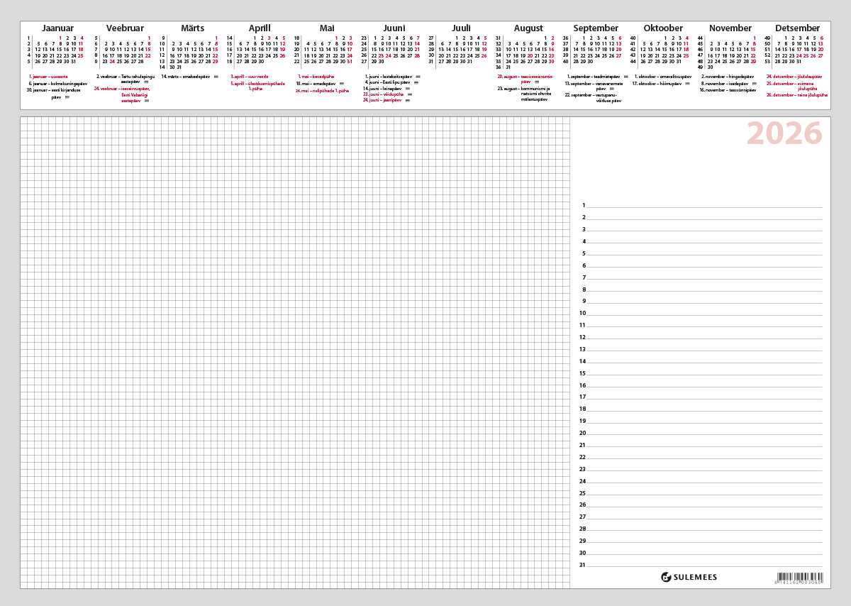 Previous Product Next Product Laualehed 600x420mm, 12 lehte servast liimitud 7,60 € Laualehed 600x420mm, 12 lehte servast liimitud Laos Laualehed 600x420mm, 12 lehte servast liimitud kogus Lisa korvi Tootekood: 00306 Kategooria: Muud lauakalendrid Kirjeldus Lisainfo Kirjeldus Liimplokk. Mõõt 600x420mm. Liimitud alumisest servast. Riigipühad, riiklikud tähtpäevad ja lipupäevad. Aastakalender alati avatud. Lisainfo Kaal 0,537500 g Mõõtmed 0,42 × 0,595 × 0,002 mm Seotud tooted Kiirvaade Kiirvaade Muud lauakalendridAstroloogiline lauakalender 5,60 € Lisa korvi Kiirvaade Kiirvaade Muud lauakalendridLauaploki alus Forofis, metallsõrestik hõbe 6,20 € Lisa korvi Kiirvaade Kiirvaade Muud lauakalendridLauakalender DUO, korraga avatud 2 nädalat, spiraalköide 3,50 € Lisa korvi