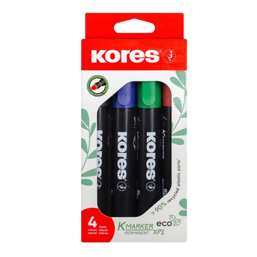Markeri komplekt KORES ECO XP1, ümar permanent, 4 värvi