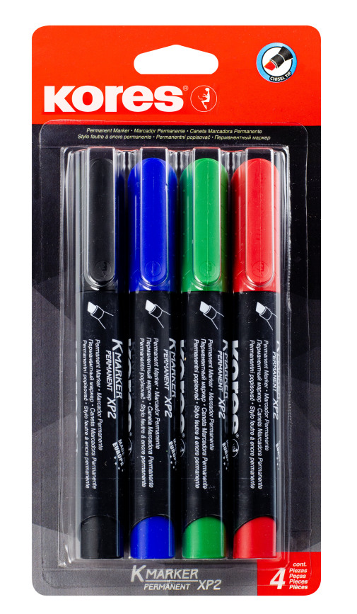 Markeri komplekt KORES XP2, lõigatud permanent, 4 värvi