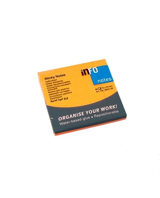 Märkmepaber Infonotes 75x75mm neoonoranz, 80 lehte
