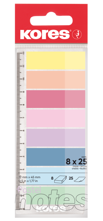 Märkmepaber-järjehoidja KORES 12x45mm PASTEL, 8värvi x 25 lehte