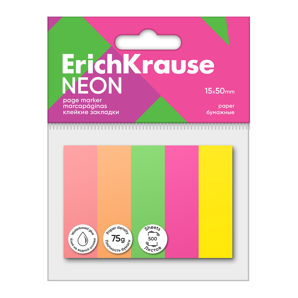 Märkmepaber-järjehoidja Neon 15x50mm, paber, 5värvi, 500 tk