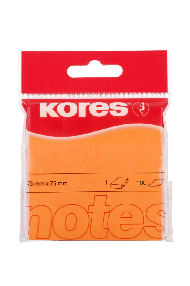 Märkmepaber KORES 75x75mm neoonoranž, 100 lehte, riputuspakis