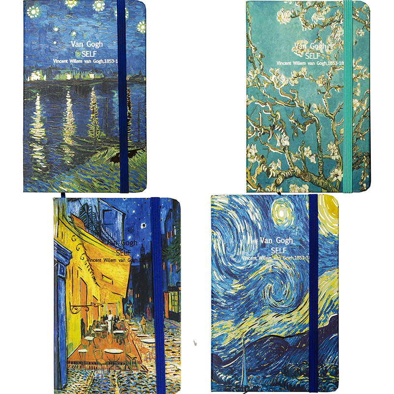 Märkmik A6 80 lehte joon, Vincent van Gogh, nurgakummiga kõva kaas, 4disaini