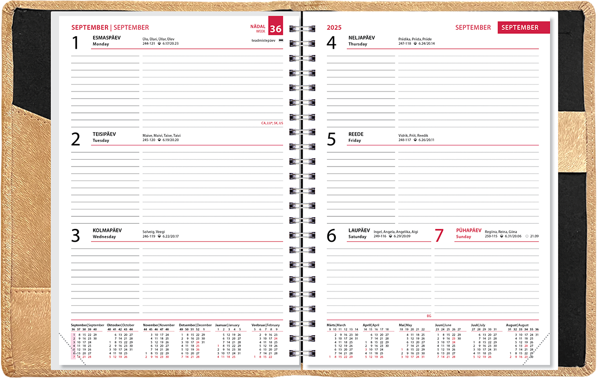Õpetajatele mõeldud märkmik sisaldab õppeaasta kalendrit, käesoleva ja järgneva õppeaasta tabelkalendreid, aastaplaani, tunniplaani lehti, õppekava ja klassijuhataja tööplaani tabeleid, 48 lk klassinimekirju hinnete märkimiseks. Kalendaariumis on märgitud riigipühad, riiklikud ja rahvakalendri tähtpäevad, lipupäevad, nimepäevad, päikese tõusu ja loojangu ajad, kuu faasid, aastaaegade algused. Märkmikul on kunstnahast LUX kaaned. Spiraalköide, lk mõõt 145×202 mm.