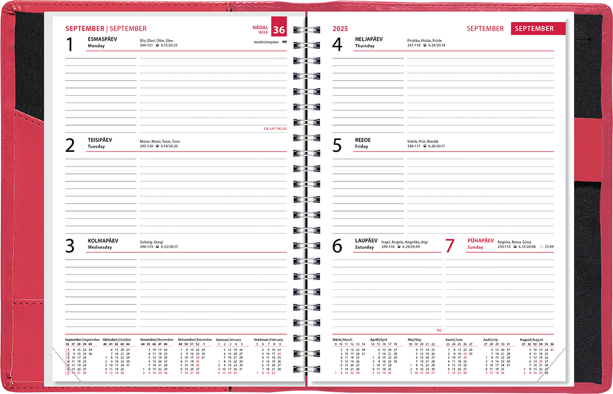 Õpetajatele mõeldud märkmik sisaldab õppeaasta kalendrit, käesoleva ja järgneva õppeaasta tabelkalendreid, aastaplaani, tunniplaani lehti, õppekava ja klassijuhataja tööplaani tabeleid, 48 lk klassinimekirju hinnete märkimiseks. Kalendaariumis on märgitud riigipühad, riiklikud ja rahvakalendri tähtpäevad, lipupäevad, nimepäevad, päikese tõusu ja loojangu ajad, kuu faasid, aastaaegade algused. Märkmikul on kunstnahast LUX kaaned. Spiraalköide, lk mõõt 145×202 mm.