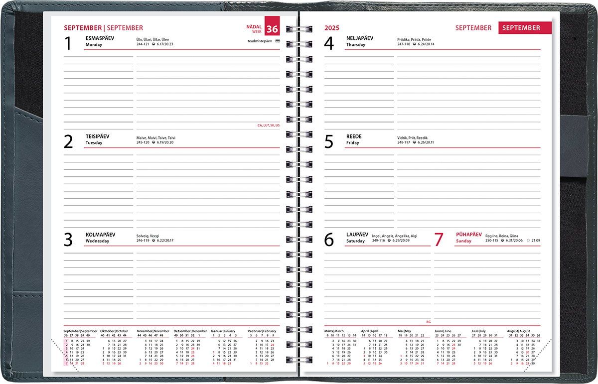 Õpetajatele mõeldud märkmik sisaldab õppeaasta kalendrit, käesoleva ja järgneva õppeaasta tabelkalendreid, aastaplaani, tunniplaani lehti, õppekava ja klassijuhataja tööplaani tabeleid, 48 lk klassinimekirju hinnete märkimiseks. Kalendaariumis on märgitud riigipühad, riiklikud ja rahvakalendri tähtpäevad, lipupäevad, nimepäevad, päikese tõusu ja loojangu ajad, kuu faasid, aastaaegade algused. Märkmikul on kunstnahast LUX kaaned. Spiraalköide, lk mõõt 145×202 mm.