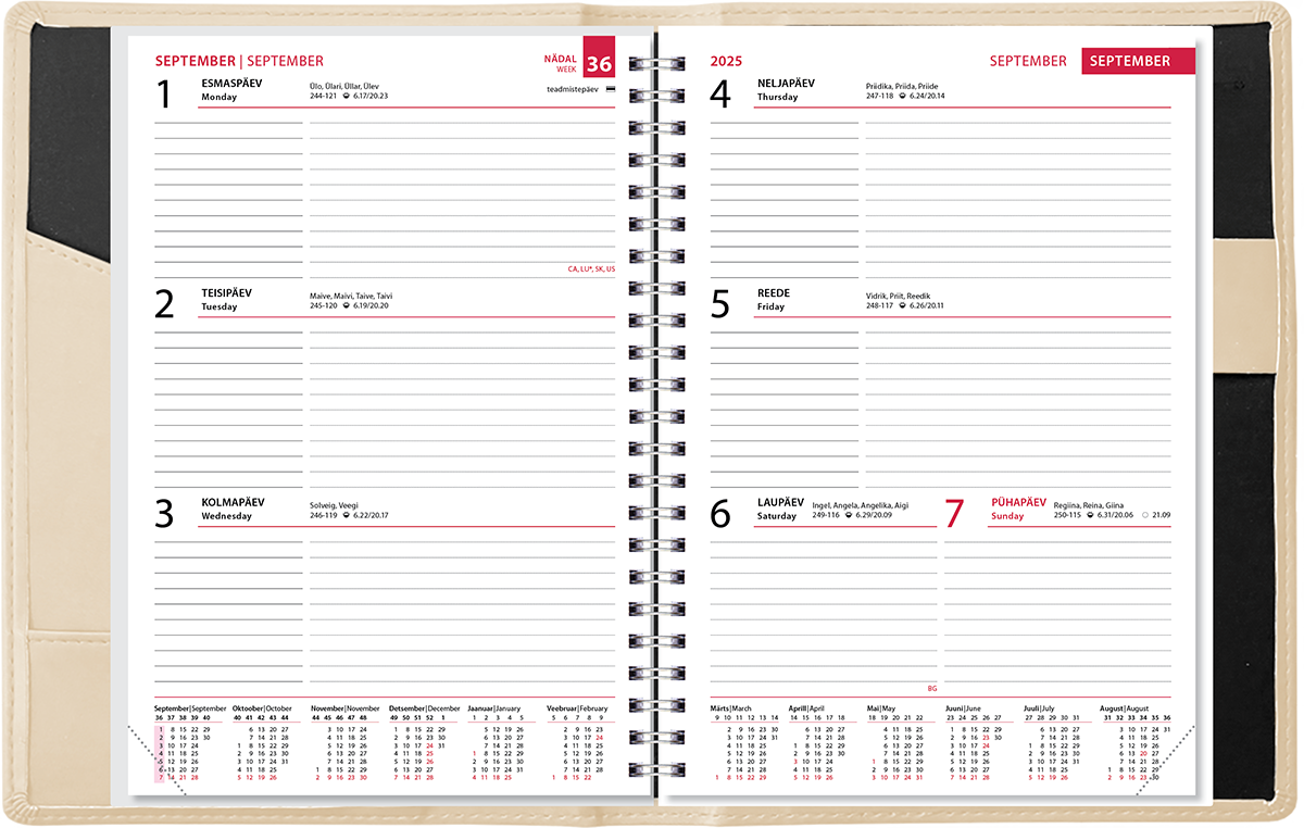 Õpetajatele mõeldud märkmik sisaldab õppeaasta kalendrit, käesoleva ja järgneva õppeaasta tabelkalendreid, aastaplaani, tunniplaani lehti, õppekava ja klassijuhataja tööplaani tabeleid, 48 lk klassinimekirju hinnete märkimiseks. Kalendaariumis on märgitud riigipühad, riiklikud ja rahvakalendri tähtpäevad, lipupäevad, nimepäevad, päikese tõusu ja loojangu ajad, kuu faasid, aastaaegade algused. Märkmikul on kunstnahast LUX kaaned. Spiraalköide, lk mõõt 145×202 mm.