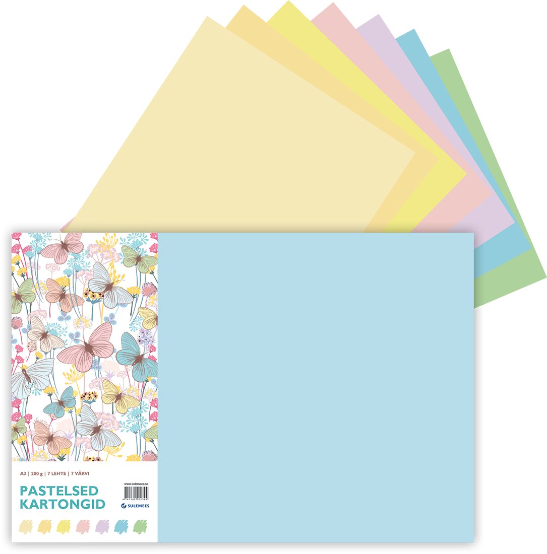 Pastelsed kartongid A3 200gr, 7 värvi, 7 lehte