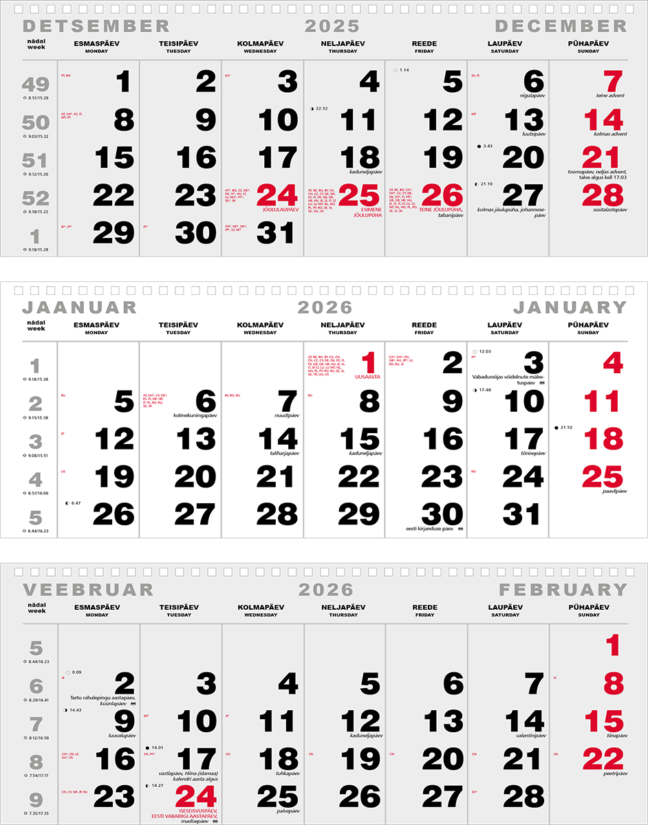 Seinakalender Trio Maxi põhi augustatud tagapapita