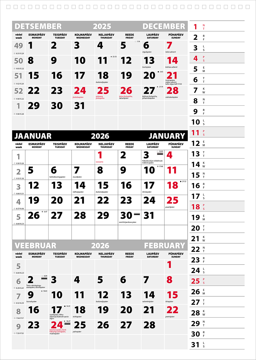 Seinakalender Trio Memo põhi augustatud tagapapita
