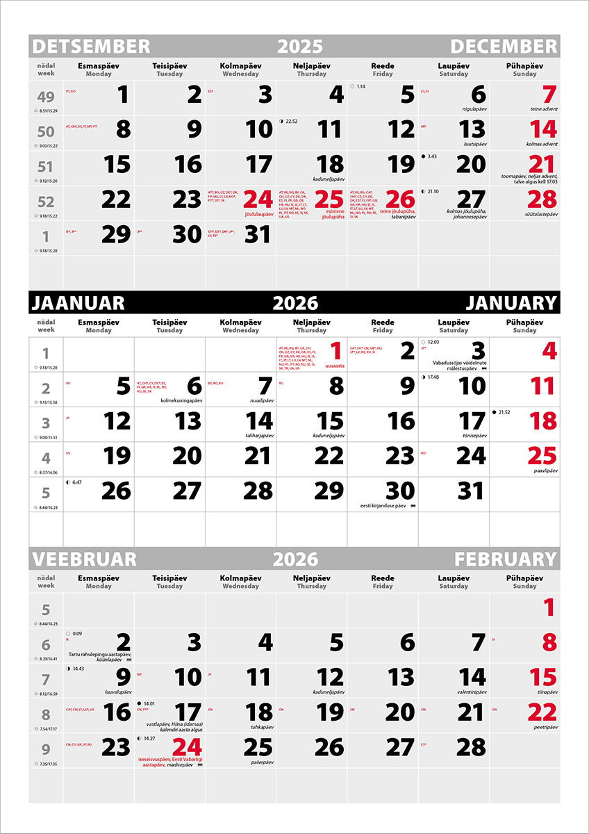 Seinakalender Trio põhi (must-punane) augustamata tagapapita