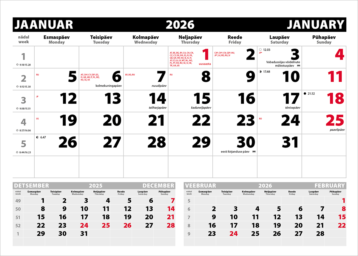Next Product Seinakalender Uno põhi (must-punane), augustamata tagapapita 0,45 € Seinakalender Uno põhi (must-punane), augustamata tagapapita Laos Seinakalender Uno põhi (must-punane), augustamata tagapapita kogus Lisa korvi Tootekood: 99001 Kategooria: Triokalendrite põhjad Kirjeldus Lisainfo Kirjeldus Laius 297mm, kõrgus 430mm Lisainfo Kaal 0,105600 g Mõõtmed 0,21 × 0,3 × 0,002 mm Seotud tooted Kiirvaade Kiirvaade Triokalendrite põhjadSeinakalender Uno põhi (must-punane), augustatud tagapapita 0,48 € Lisa korvi Kiirvaade Kiirvaade Triokalendrite põhjadSeinakalender Trio põhi (sinine-punane) augustamata tagapapita 0,69 € Lisa korvi Kiirvaade Kiirvaade Triokalendrite põhjadSeinakalender Trio Extra põhjad koos köitmise ja aknakomplektiga (tagapapiga) 2,72 € Lisa korvi