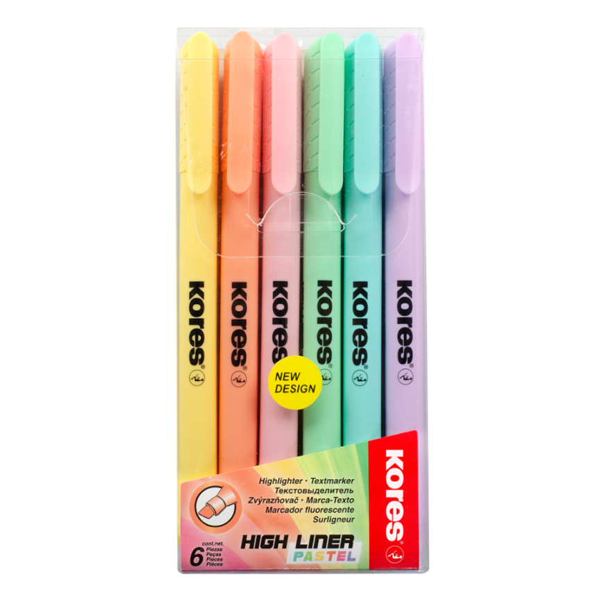 Tekstimarkeri komplekt KORES High Liner Pastel, 6 värvi riputuspakis