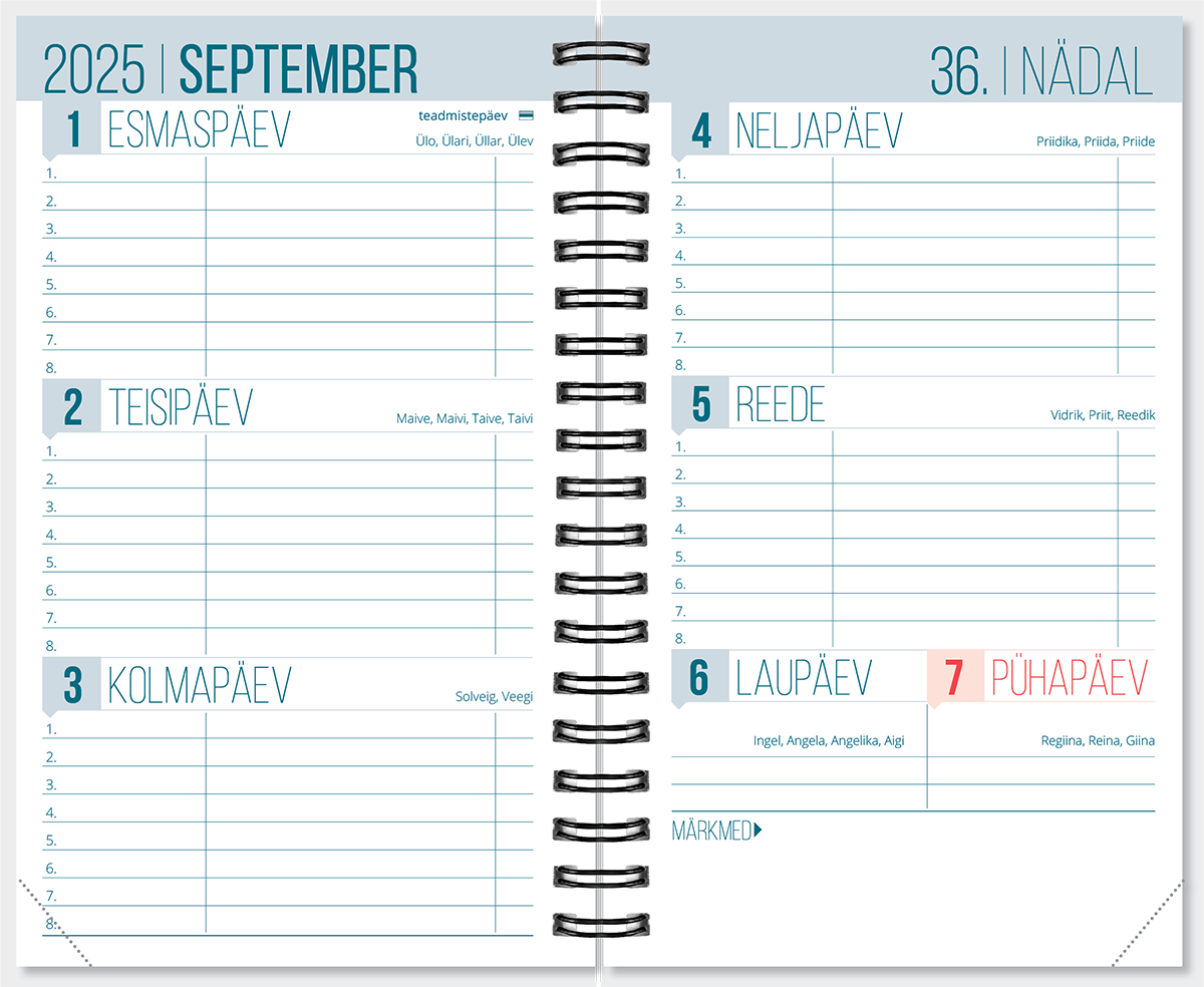 Nooremale ja keskmisele koolieale mõeldud päevik sisaldab värvilisi Eesti ja Maailma kaarte, õppeaasta kalendrit, trimestrite kaupa tunniplaane, hinnetelehti, nimepäevi, rahvakalendri tähtpäevi, ülevaadet Eestist ja Eesti riiklikest sümbolitest, ameerika-inglise mõõtühikuid, trigonomeetria valemeid, keemiliste elementide perioodilisuse süsteemi, kreeka tähti, rooma numbreid, sodiaagimärkide tabelit, liiklusmärke, huvitavaid fakte Päikesesüsteemi ja meie planeedi kohta, lehekülgi sõprade ja vanemate andmete märkimiseks, tühje lehekülgi märkmete tegemiseks. Spiraalköide, lk mõõt 110×170 mm.