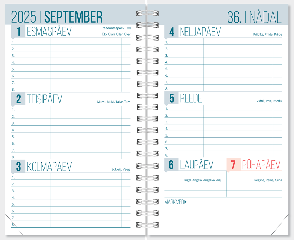 Nooremale ja keskmisele koolieale mõeldud päevik sisaldab värvilisi Eesti ja Maailma kaarte, õppeaasta kalendrit, trimestrite kaupa tunniplaane, hinnetelehti, nimepäevi, rahvakalendri tähtpäevi, ülevaadet Eestist ja Eesti riiklikest sümbolitest, ameerika-inglise mõõtühikuid, trigonomeetria valemeid, keemiliste elementide perioodilisuse süsteemi, kreeka tähti, rooma numbreid, sodiaagimärkide tabelit, liiklusmärke, huvitavaid fakte Päikesesüsteemi ja meie planeedi kohta, lehekülgi sõprade ja vanemate andmete märkimiseks, tühje lehekülgi märkmete tegemiseks. Spiraalköide, lk mõõt 110×170 mm.
