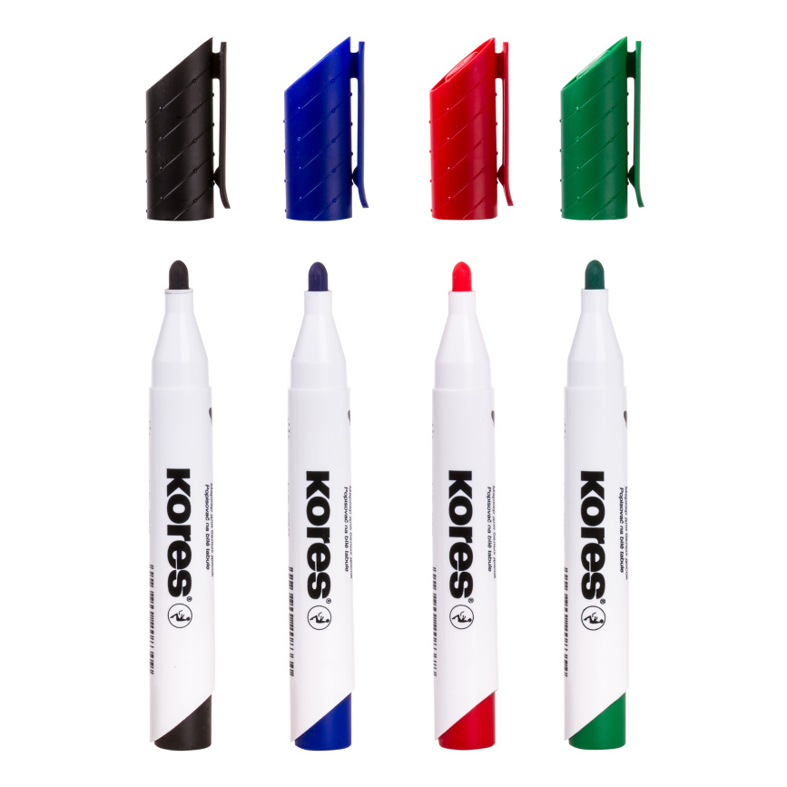 Valge tahvli markeri komplekt KORES XW1, ümar, 4 värvi