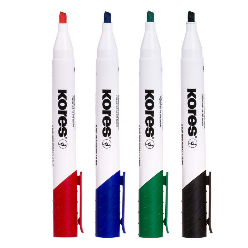 Valge tahvli markeri komplekt KORES XW2, lõigatud, 4 värvi
