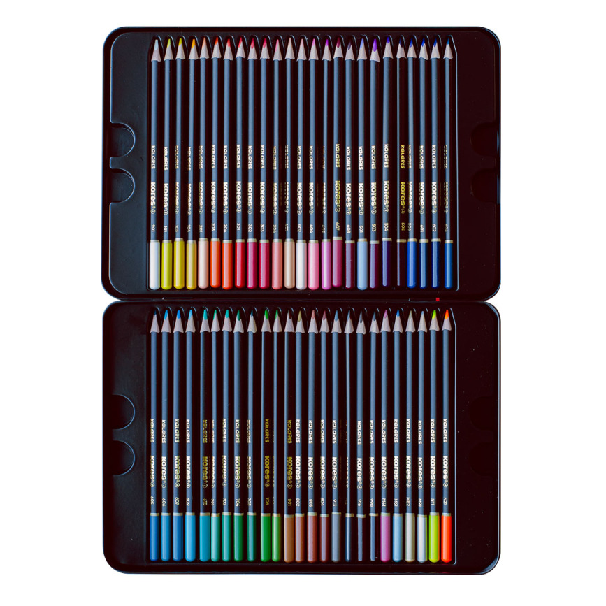 Värvipliiatsid kolmnurksed 50 värvi KORES Kolores, metallkarbis