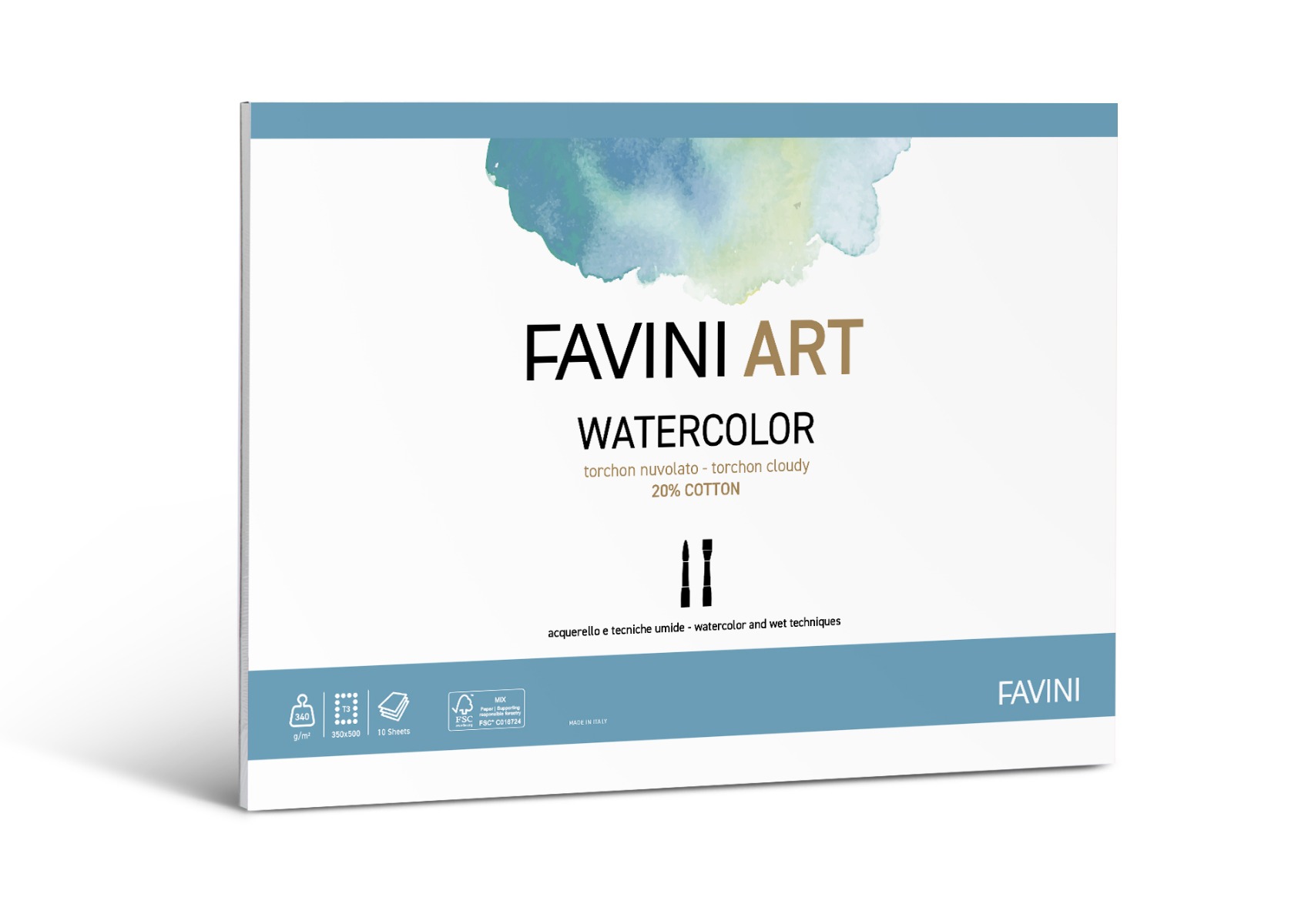 Akvarellplokk B3 340 g, 10 lehte Favini Torchon, 25% puuvilla