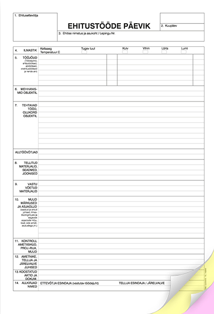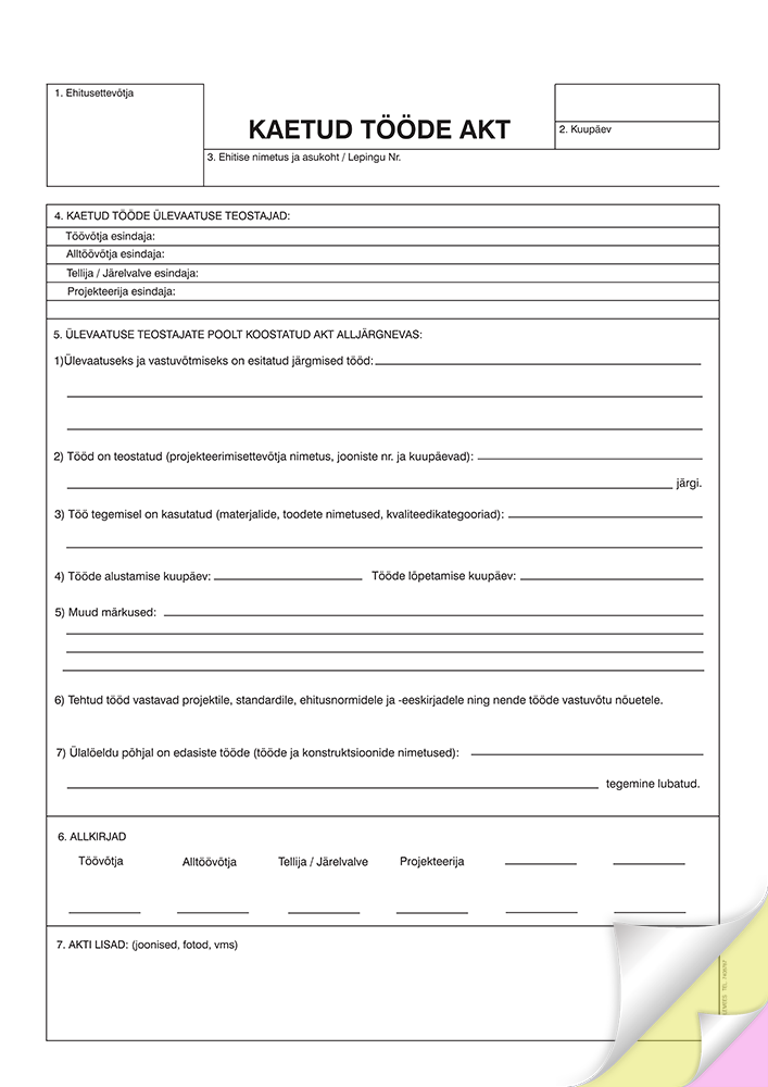 Blankett Kaetud tööde akt A4, isekopeeruv 3×25 lehte