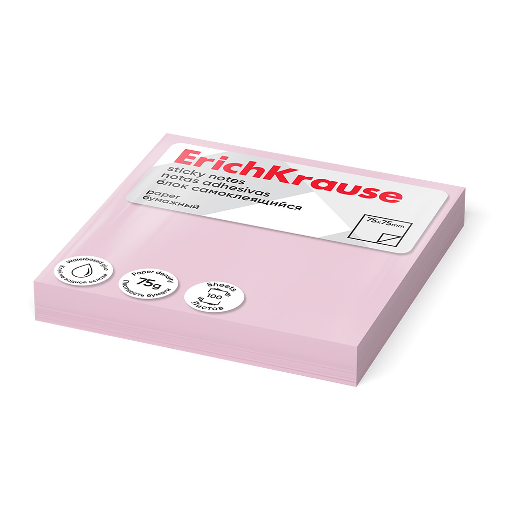 Märkmepaber Erich Krause 75x75mm, roosa, 100 lehte