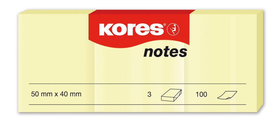 Märkmepaber KORES 50x75mm kollane, 100 lehte