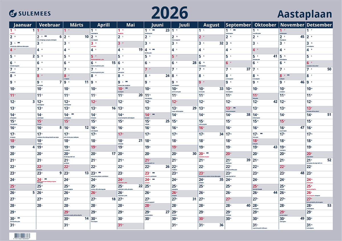 Minimalistliku kujundusega seinakalender märkmete tegemiseks. Riputusaasaga spiraalköide, suurus 297×420 mm. Kalendaarium sisaldab riigipühi, riiklikke ja rahvakalendri tähtpäevi, lipupäevi, kuu faase, aastaaegade alguseid, eelneva ja järgneva kuu kalendreid.