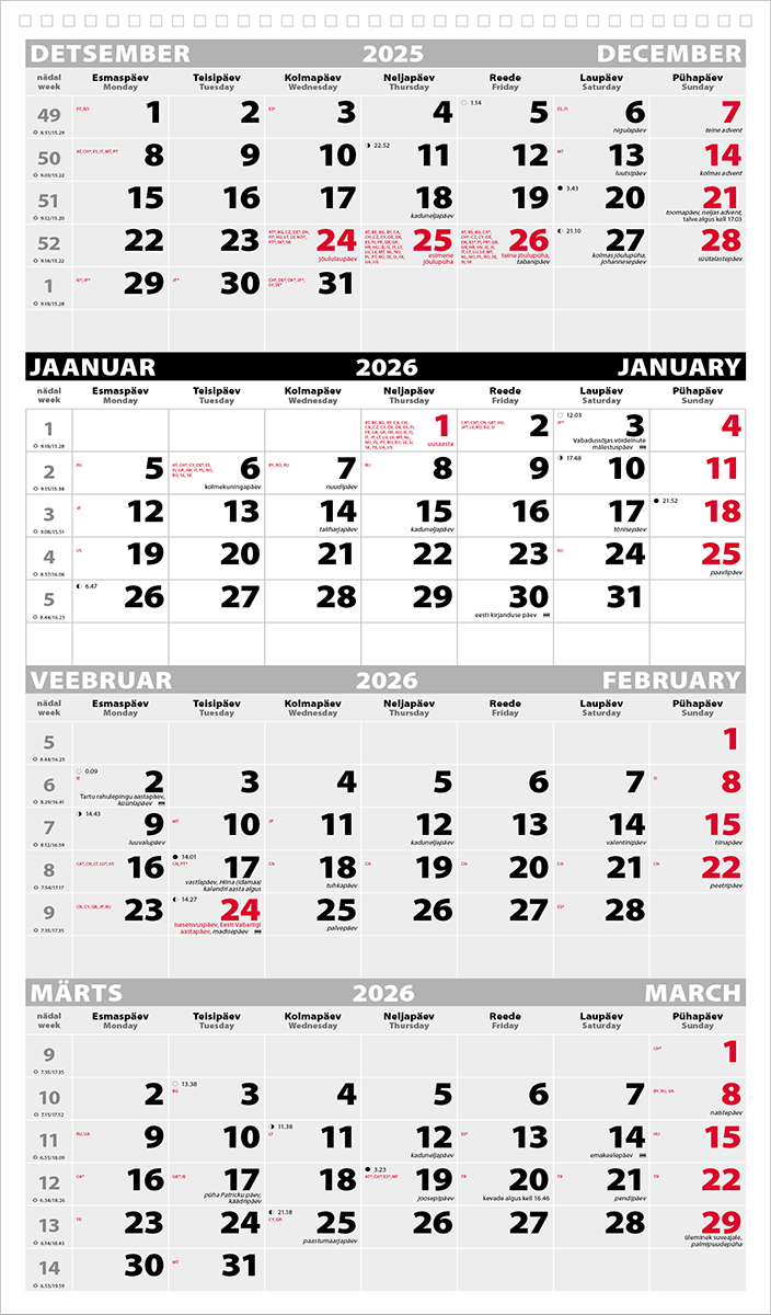 Seinakalender Trio Maxi 4-osaline põhi augustamata tagapapita