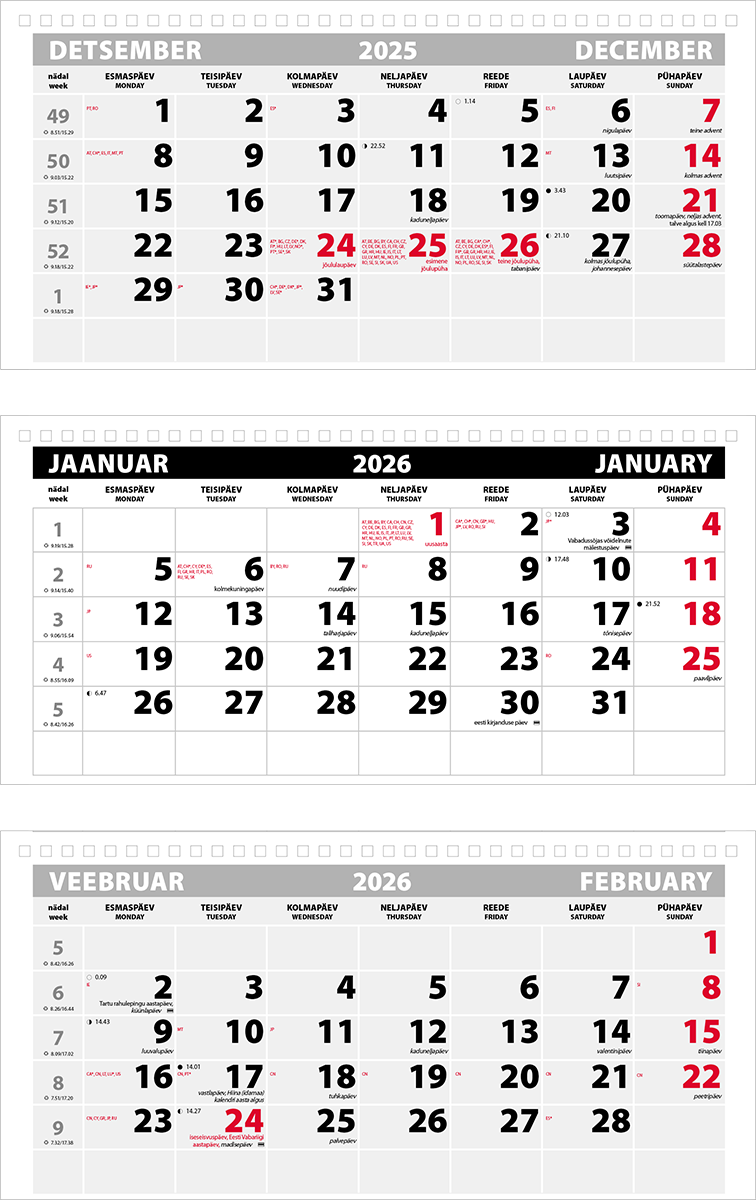 Seinakalender Trio Maxi põhi augustamata tagapapita