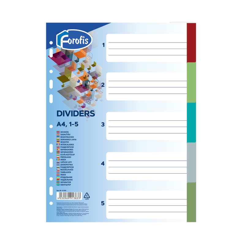 Vahelehed A4 1-20 Forofis plastik värviline