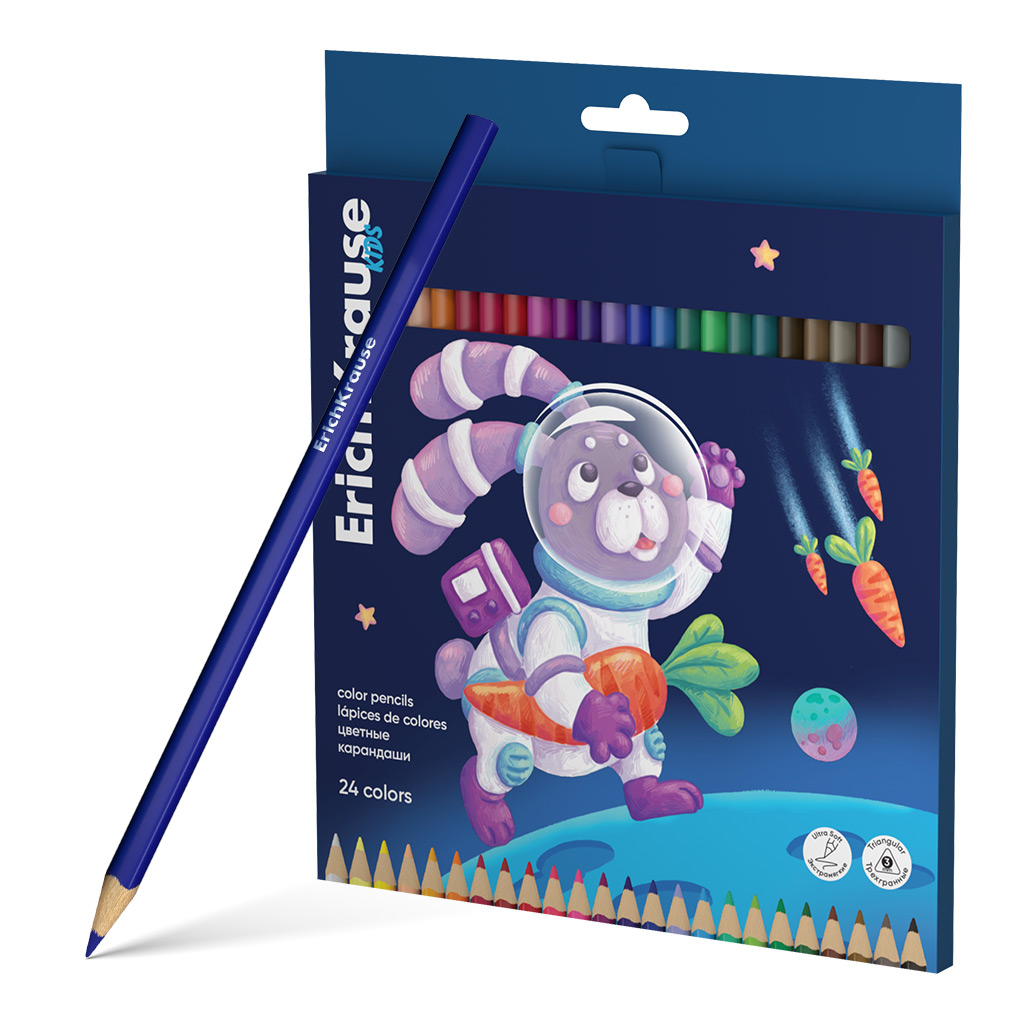 Värvipliiatsid 24 värvi Erich Krause, puiduvaba, kartongpakis